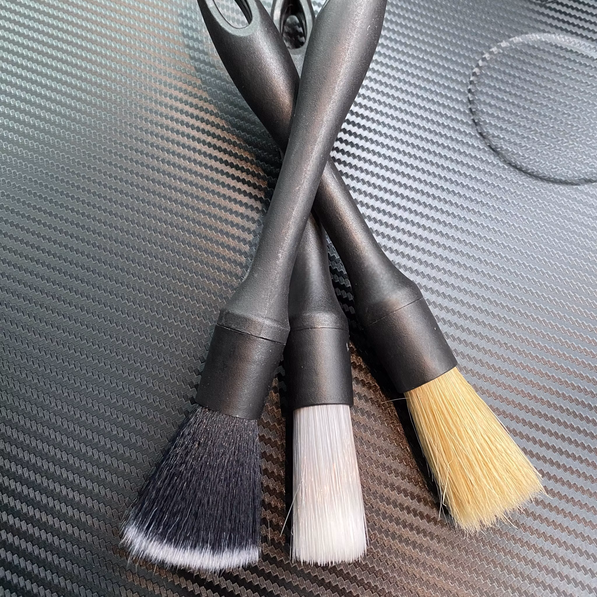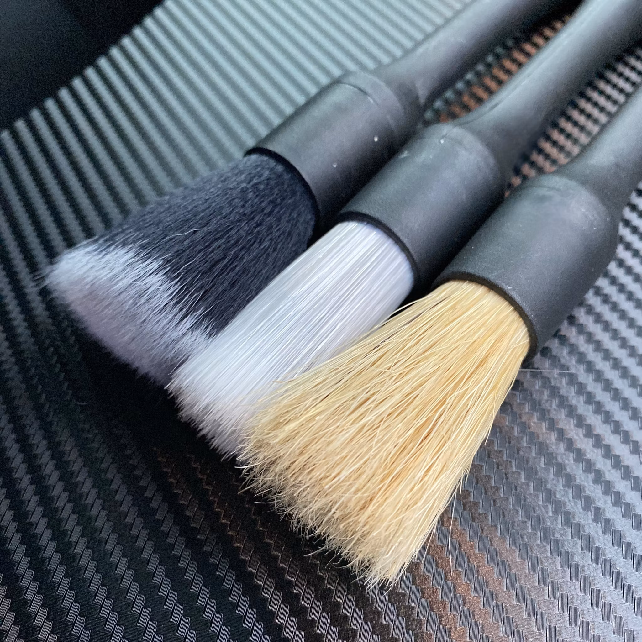 De 3 rengöringsborstarna levereras i ett paket - du får således rengöringsborstar för hela bilen på en gång i det här setet.