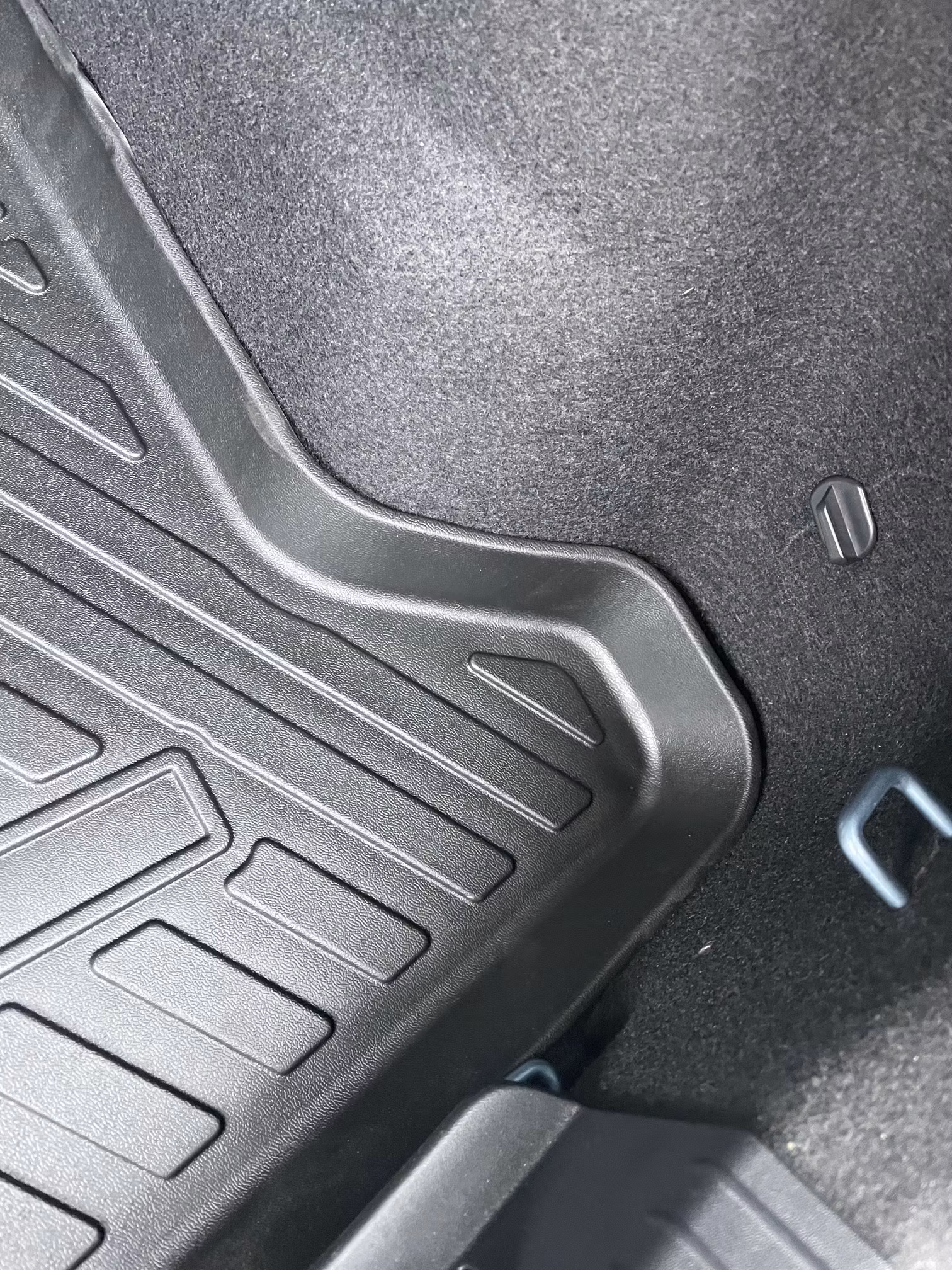 De höga kanterna för att inget kan rinna över kanten eller att smuts och grus kommer ut på bilens matta.