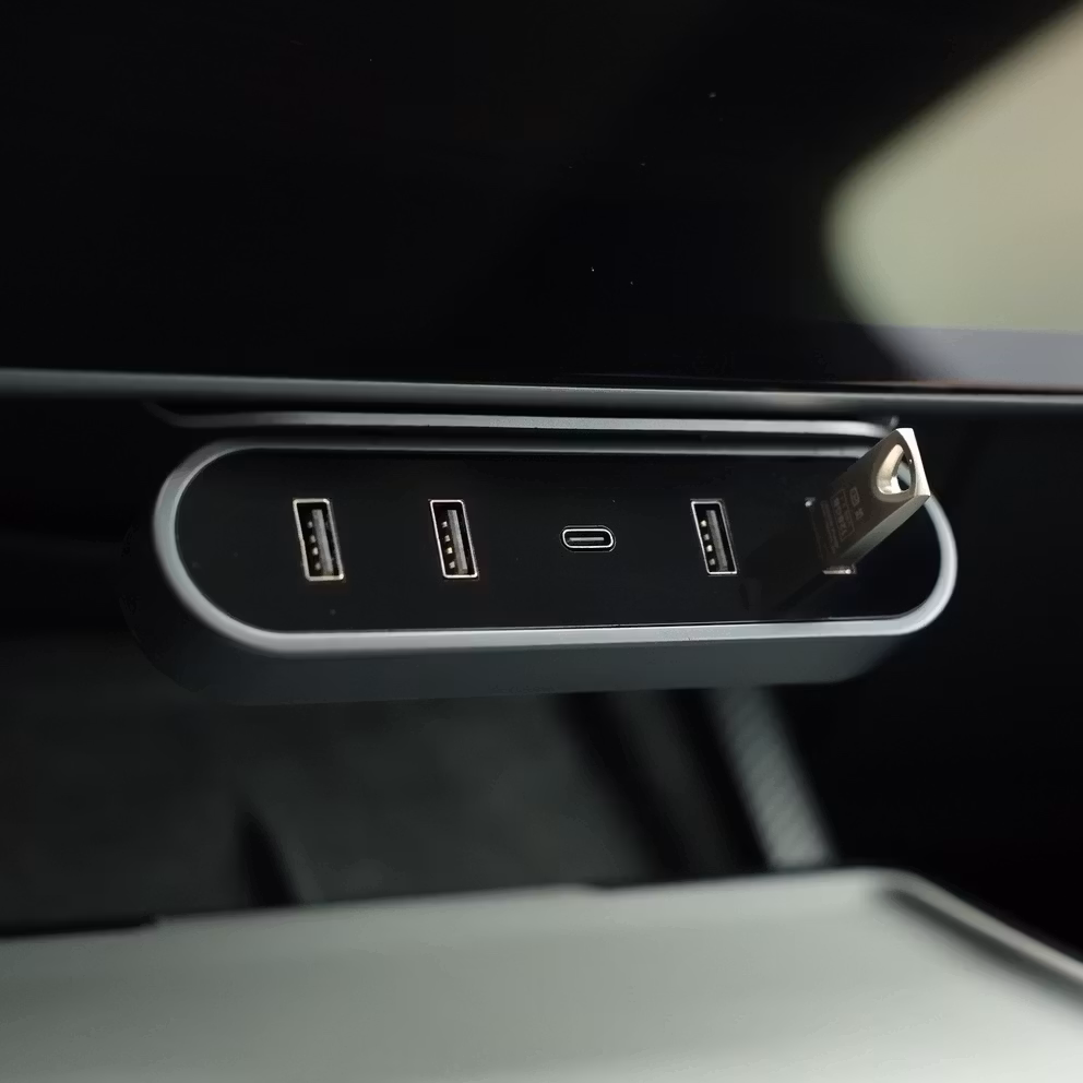 Upptäck Teslifys innovativa dockningsstation som fästs med dubbelhäftande tejp i underkanten av skärmen. Denna smarta och stilrena lösning gör det möjligt att enkelt ladda dina mobiler, datorer och ansluta spelkonsoler, vilket gör varje resa både bekvämare och mer underhållande.