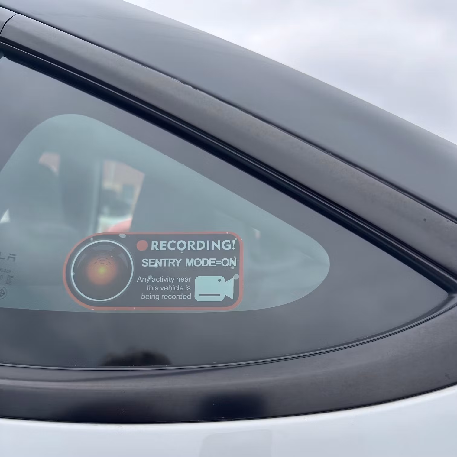 Förbättra säkerheten och utseendet på din Tesla med vår exklusiva Sentry Mode dekal.