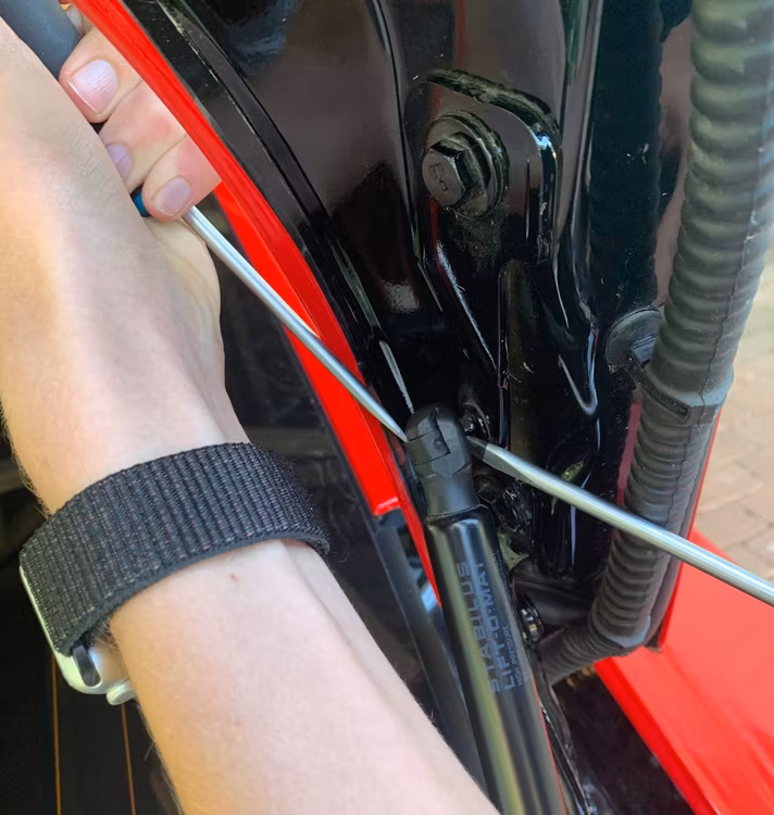 Enkla att montera, ca 5 minuter, men du behöver hjälp av någon som kan hålla luckan åt dig när du plockat av fjädern.