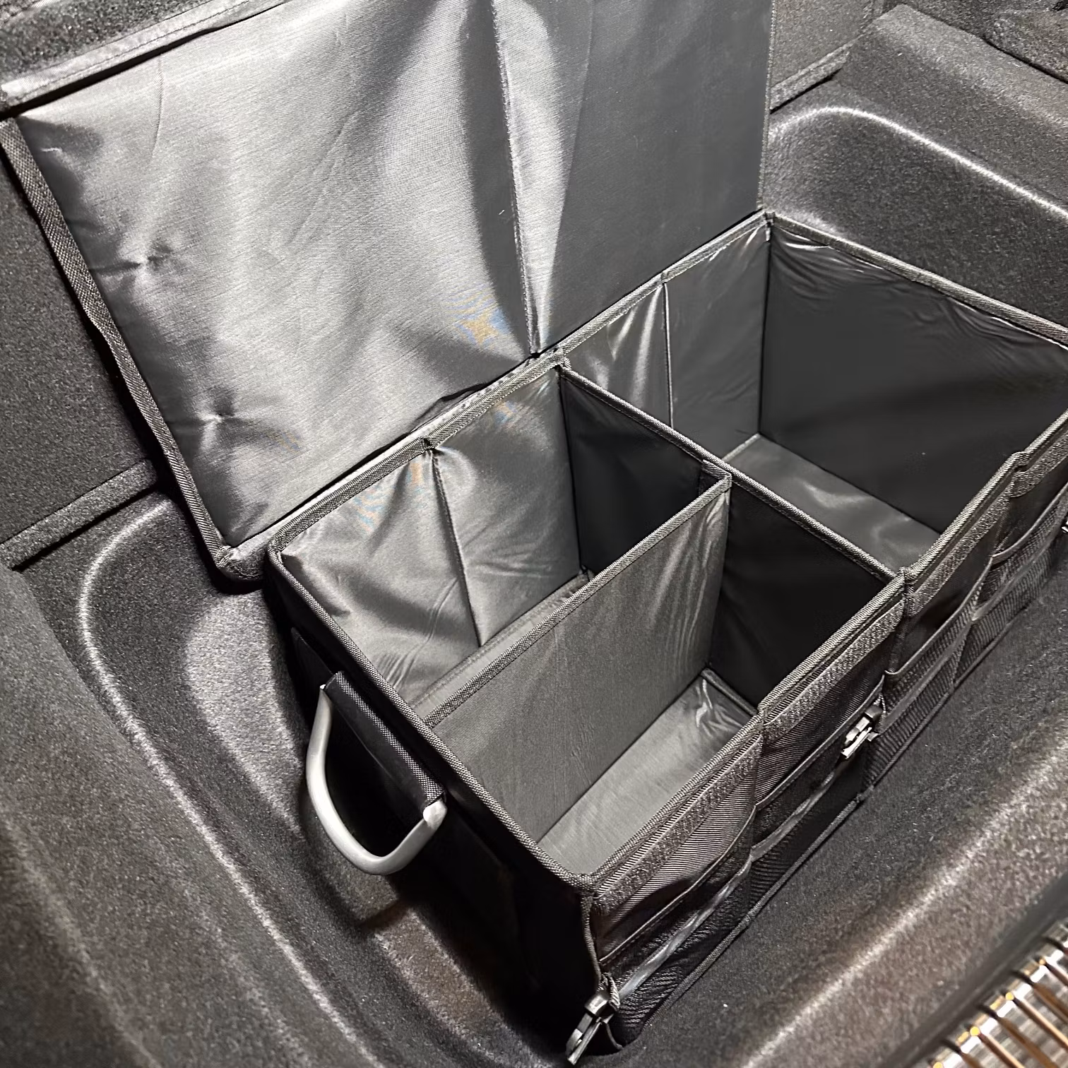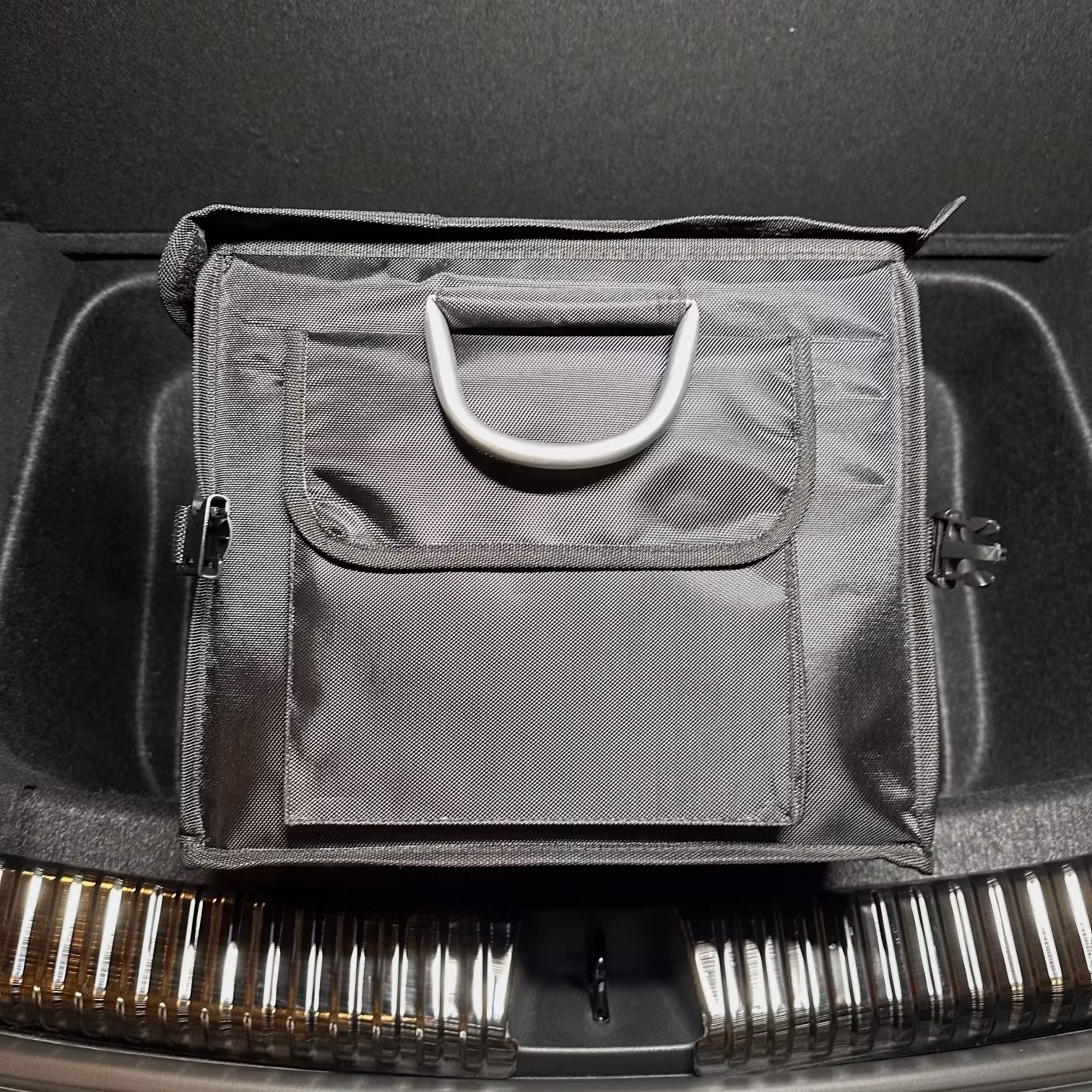 Förvaringsväskan är noggrant designad för att passa riktigt bra i din Tesla-trunk, vilket säkerställer maximalt utrymme och bekvämlighet. Med generösa fack erbjuder väskan flexibilitet och anpassningsbarhet för dina specifika behov.