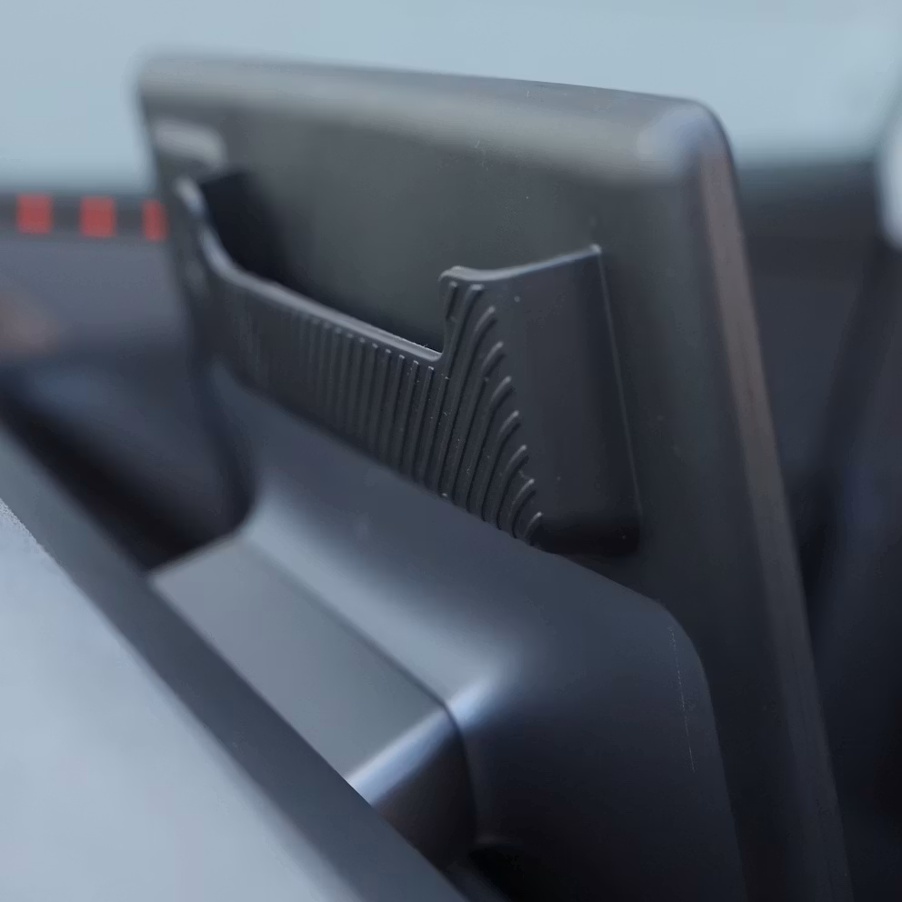Smart förvaring för mobilen som man trär på baksidan av skärmen.