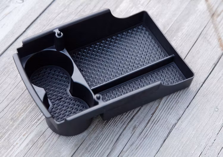 Förvaringslådan är specialdesignad för att passa i din mittkonsoll och smälter fint in i bilens övriga inredning.