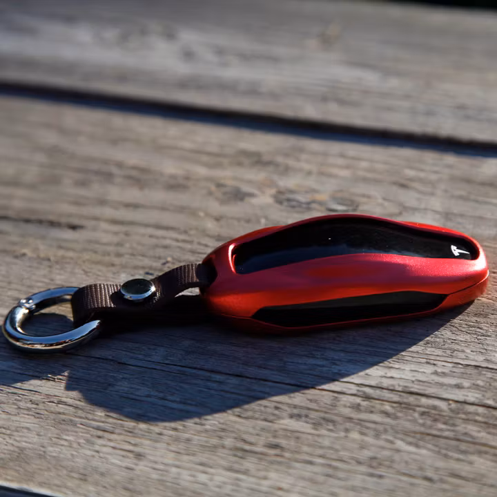 Snygg nyckelhållare i aluminium som skyddar din nyckel och har en elegant läderflärp som du enkelt fäster i din nyckelknippa.