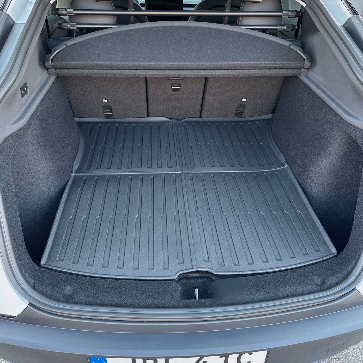 Perfekt passform: Tack vare den formgjutna designen anpassar sig mattan exakt efter bagageutrymmet i din Tesla Model Y. Detta garanterar att varje hörn och kant är skyddad mot oönskade fläckar och spill.