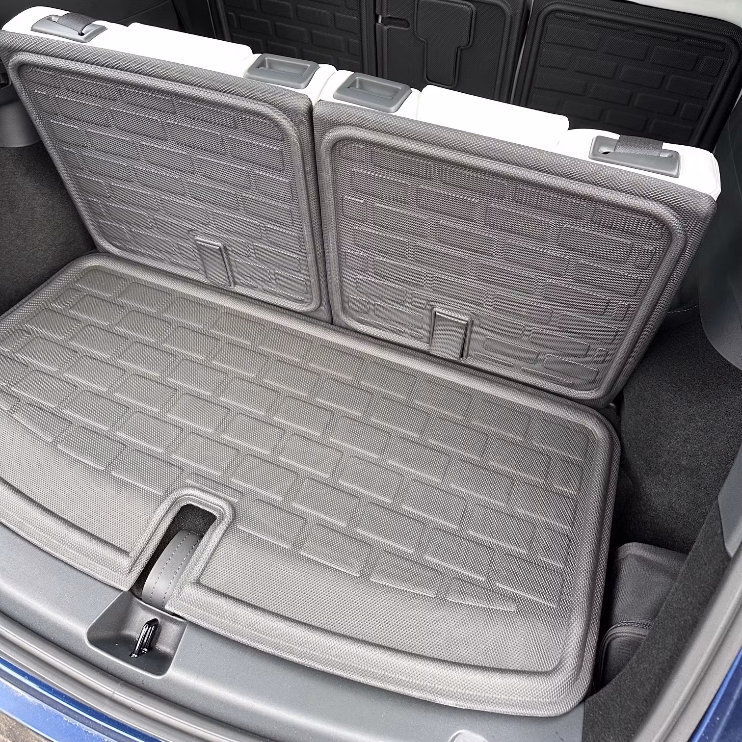 Vår bagagematta är noggrant formgjuten för att exakt passa konturerna av din Tesla Model Y, vilket säkerställer en sömlös integration med bilens interiör. Tillverkad av högkvalitativt XPE-material, erbjuder den en robust och slitstark yta som är resistent mot smuts, vätskor och slitage, vilket gör den till det ultimata skyddet för ditt bagageutrymme.