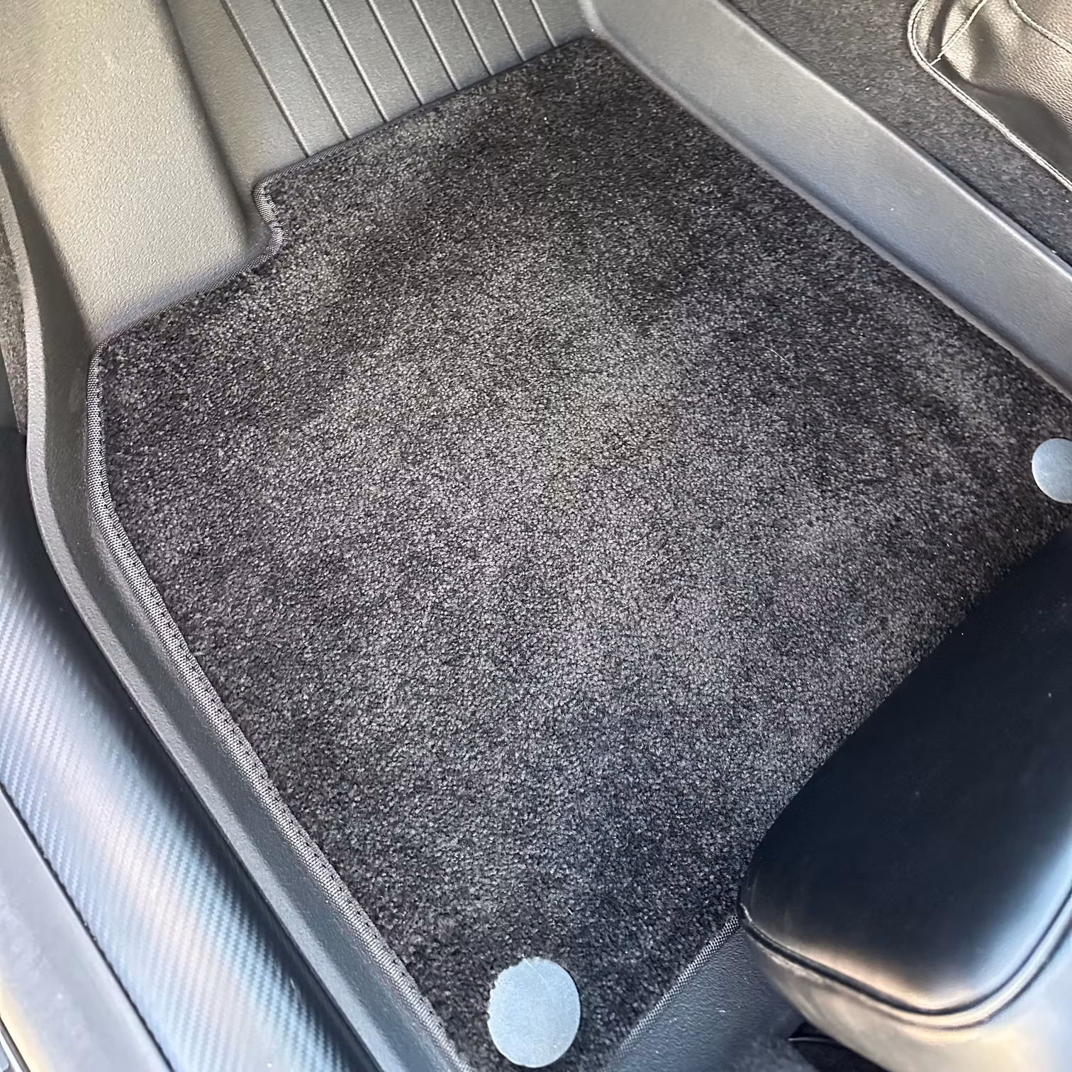 Dessa mattor är robusta och tunga men ändå enkla att hantera. De är helt luktfria, vilket säkerställer en fräsch interiör i din Tesla Model Y. För att ta av tygmattorna behöver du bara snäppa upp knapparna i nederkant och sedan sätta tillbaka dem när du är klar.