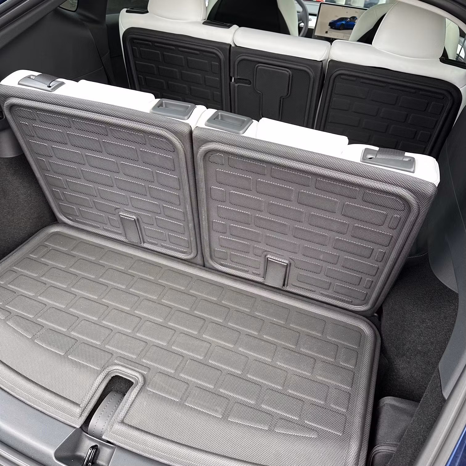 Skydda din Tesla Model Y med våra exklusiva skyddsmattor till baksidan av baksätena (2:a raden) i Tesla Model Y 7 säten. Dessa högkvalitativa mattor är designade för att ge överlägset skydd och hålla din bil i toppskick.